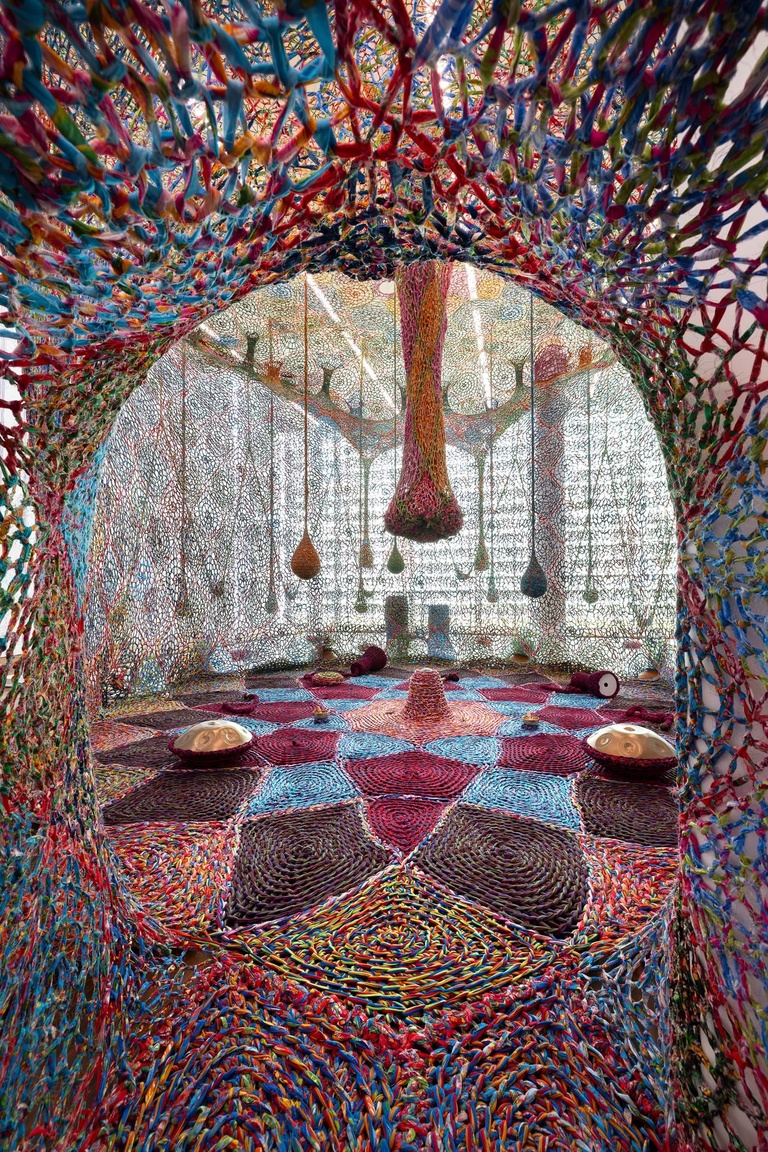 Amidst a world rapidly changing under the weight of climate change, the exhibition “I Feel the Earth Whisper” at Museum Frieder Burda invites us to contemplate the fragile beauty of the natural world and our profound interconnectedness with it. Through the installations of Bianca Bondi, Julian Charrière, Sam Falls and Ernesto Neto – including sculpture, painting, video and photography – the show curated by Patricia Kamp and Jérôme Sans, invites us to reflect upon our relationship with the forests and unique ecosystems of the planet, and to rekindle our historically rooted role as guardians of these vibrant living spaces.