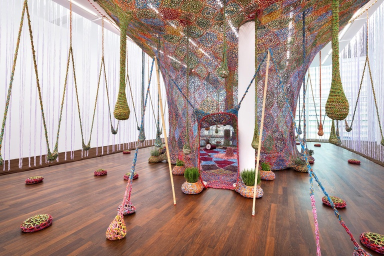 Exhibition view, The Birth of Contemporous Blue Tree, Ernesto Neto, Frieder Burda Museum, 2024