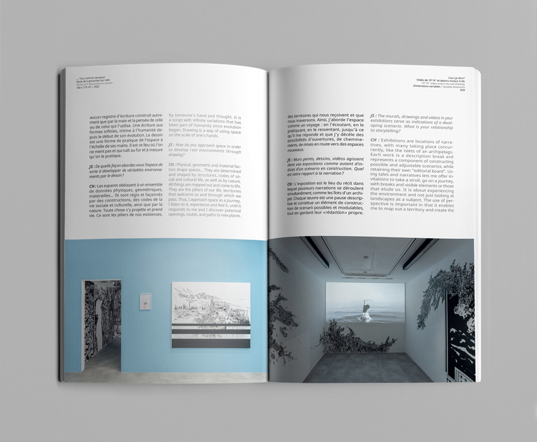 The exhibition I See a Bird / Je vois un oiseau is the scene of multiple narratives, a succession of “drawn voyages,” where changing landscapes, real or fictional, blend into each other. Connected in a fluid and borderless environment, birds are our guides here. Free and autonomous, they embody the problems of lines, trajectories, energy (“creative wings”), the ways of the world, and landscapes, which all permeate the work of Chourouk Hriech. Taking inspiration from the behavior of migratory birds, the artist explores them as witnesses to our own relationship with the environment, and as indicators of the ecological crisis, especially the extinction of certain species.