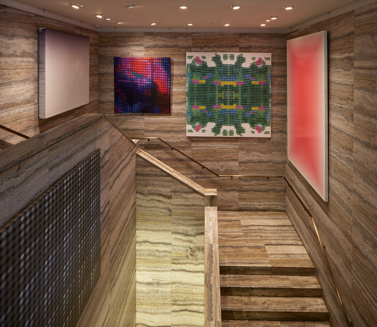 In contrast to the incessant acceleration of our lives in an ultra-contemporary urban world, Enlightening Times offers itself as a meditative space, a journey into worlds of colour that underscores the vital dimension of light and time.