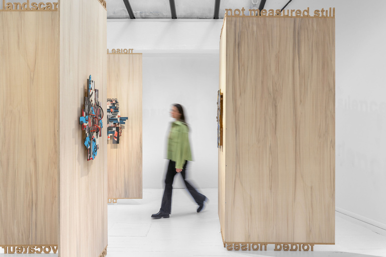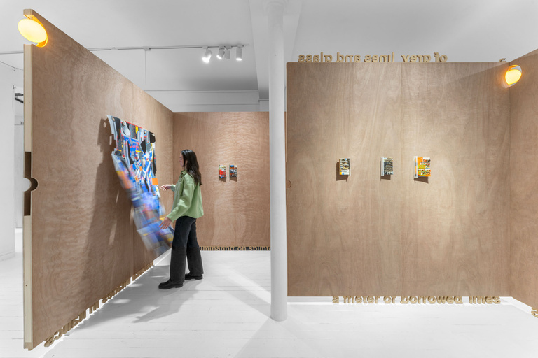 For his first monographic exhibition in Paris at the 193 Gallery, Rafael Domenech draws a new space within that of the gallery, creating entirely different possibilities. Planting the seeds for a new story and context, he divides the space with wooden walls that act like folding screens—an object which traditionally holds an important place in art history. Like paintings floating in space, the architectural device is both a work of art in itself and a recipient for other works, mounted on its walls and contained inside it, in the manner of a Russian Doll. As is Rafael Domenech’s custom when creating new spaces, everything inside them, with no exception, becomes a work of art.
