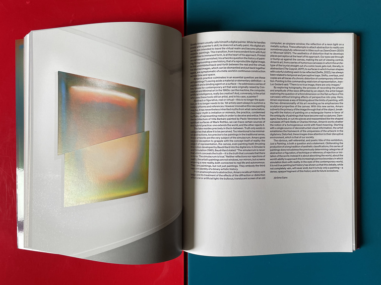 Designed as a book-object, the catalog features contributions from writers and curators, including Mariuccia Casadio, Jérôme Sans, Cristiana Perrella, Nicolas Trembley, and Kitty Scott. It reviews the artist's exhibitions at Almine Rech in Paris, London, Brussels, and Shanghai, along with a museum exhibition in Copenhagen and his notable collaboration on a billboard with Valentino in Paris.