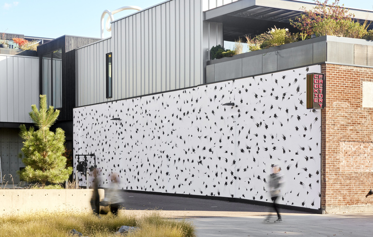 Installation view of Gary Simmons’ Rush, exhibited at Cookie Factory, Denver. Photo credit: Conor King.