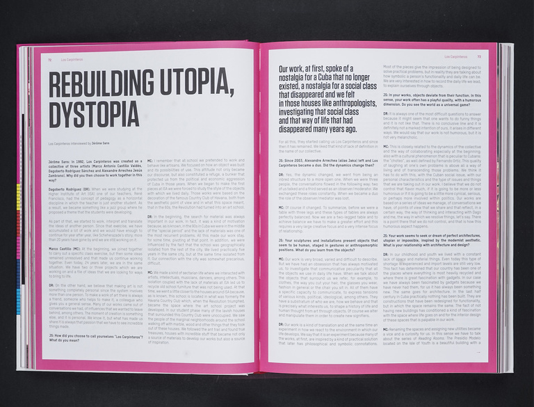 "Every artist in this book, whether he stayed in Cuba or settled abroad, remains strongly attached to his roots and offers not only a new look at the contemporary world but also participates in the Cuban cultural revival by addressing more universal themes like utopia, everyday life, immigration, identity or the consequences of globalization."
