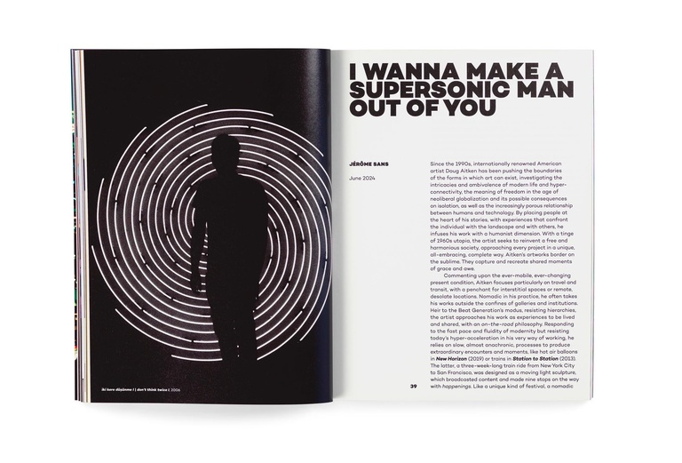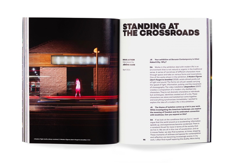 Pour l'exposition monographique Naked City de Doug Aitken à Borusan Contemporary, des œuvres couvrant la période de 2006 à 2024 sont exceptionnellement réunies pour créer un voyage à travers l'architecture. Depuis les années 1990, l'artiste américain de renommée internationale repousse les limites des formes dans lesquelles l'art peut exister, en étudiant les complexités et l'ambivalence de la vie moderne et de l'hyper-connectivité, la signification de la liberté dans une société mondialisée néolibérale et ses conséquences possibles sur l'isolement, ainsi que la relation de plus en plus poreuse entre l'homme et la technologie. En plaçant l'humain au cœur de ses histoires, il crée des expériences qui confrontent l'individu au paysage et aux autres. Avec une teinte d'utopie des années 1960, l'artiste américain cherche à réinventer une société libre et harmonieuse, abordant chaque projet de manière unique, globale et complète. A la limite du sublime, ses œuvres sont à vivre, reproduisant des moments de grâce et d'éblouissement collectif.