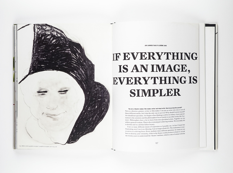"Dans un monde qui s'est replié sur un 'réalisme superficiel' pour tenter de survivre, Jan Lauwers utilise les mots et les images pour baliser un territoire singulier dans lequel l'hystérie, l'absurde, l'inexprimable, la liberté et le désarroi peuvent coexister et même ne faire qu'un. Jan Lauwers déploie sa personnalité bien équilibrée pour créer des ouvertures risquées vers des sphères rendues invisibles par notre monde moderne."