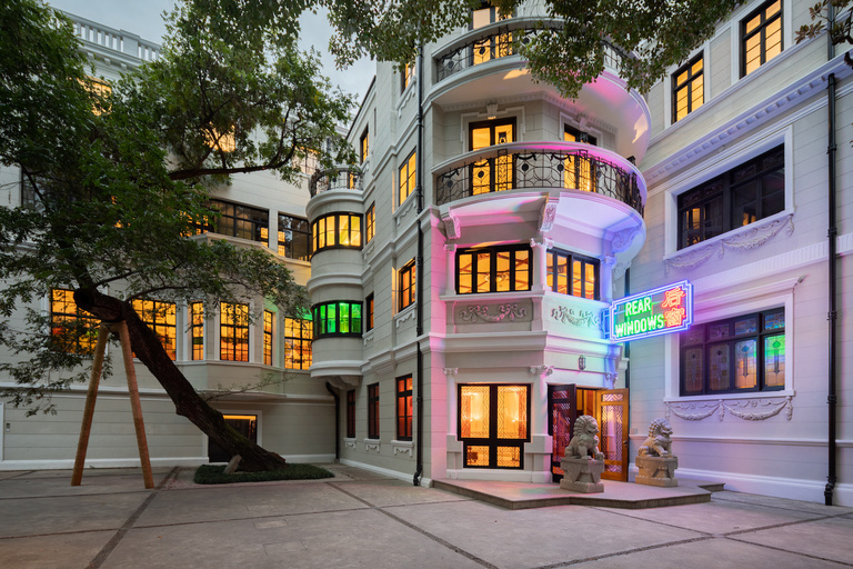 En effet, l'histoire de Prada Rong Zhai est un palimpseste de l'histoire centenaire de Shanghai. Au cours des dernières décennies, la résidence historique de 1918 a été la maison privée d'un entrepreneur, un bien public après la socialisation, avant d'être restaurée pour devenir un lieu dédié à l'art. Un tel lieu porte encore les marques des différentes conditions sociales au fil du temps et les esprits des personnes et des choses accueillies en son sein. Rear Windows - inspiré du film éponyme - traite de ce concept hitchcockien. Le regard porté sur le monde extérieur changeant évolue parfois comme une façon d'examiner nos propres vies. Les expositions dans les salles sont conçues comme des scènes pour expérimenter l'acte de voir, d'être vu, ou observé. À travers certaines de ses séries emblématiques comme la série Fenêtre du voisin et Fenêtre du Tétris (dans lesquelles il emprunte la technique du trompe-l'œil en combinant de vieux cadres de fenêtres en bois avec des œuvres d'artistes français et d'autres artistes coloniaux ou de nouvelles architectures derrière des vitres devenus les repères culturels et artistiques de l'espace urbain chinois actuel), Li Qing propose des références à la ville de Shanghai (ou même de Hangzhou, où il vit) qui s'est développée en une superposition de différents espaces et périodes de temps, une couche entrelacée de bâtiments anciens et nouveaux et d'histoires de différents groupes sociaux.