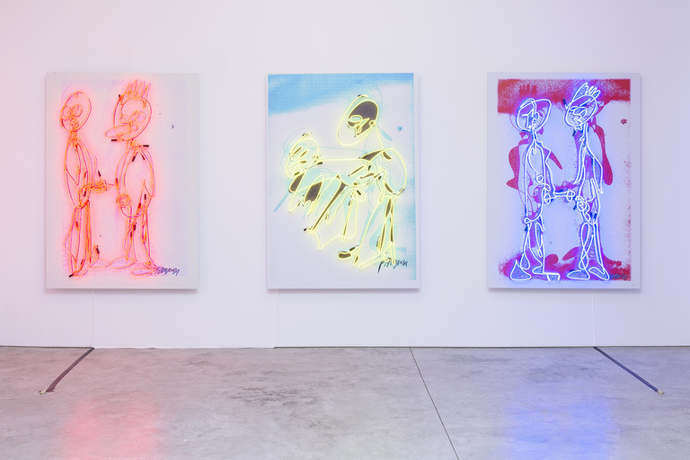 Pascale Marthine Tayou, Graffitti Neon Series, 2018. Exhibition view: Colorful Line, 2018 © Richard Taittinger Gallery, New York © Photo: Shark Senesac