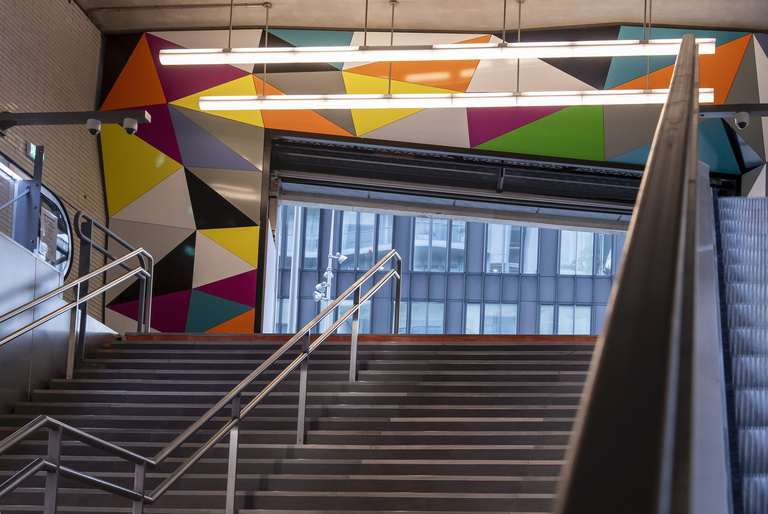 Titre : « Je ne suis jamais allé nulle part » oeuvre de Tobias Rehberger à la station Pont Cardinet sur la Ligne 14 Ratp © Photo RATP Bruno Marguerite