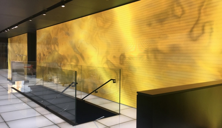 La surface multimédia est destinée à offrir aux spectateurs des aperçus accessibles et vibrants de réalités projetées qui défient leurs sens et leurs environnements rectilignes - créant une atmosphère qui est un mélange fluide de lumière, de mouvements et de personnes.