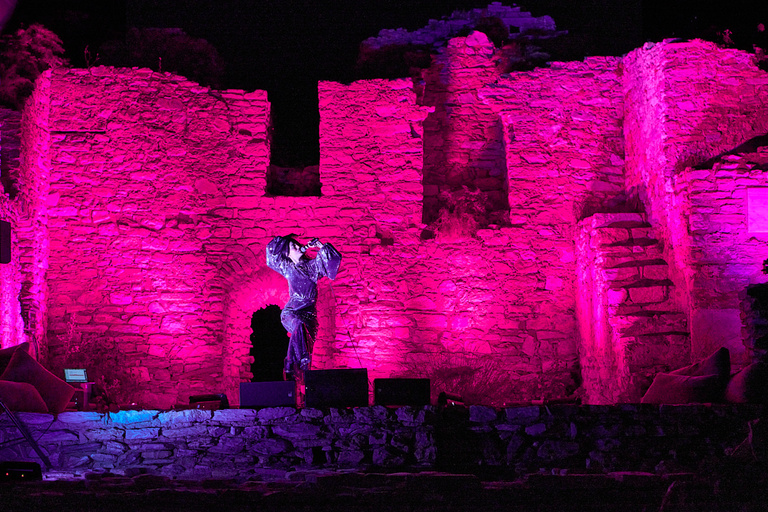 Le voyage se poursuit dans les ruines antiques de Iassos, et l’atmosphère cinématographique s’intensifie. Avec Terribly Happy, le public est entraîné dans une performance in situ avec des paroles écrites spécialement pour le festival par :mentalKLINIK, interprétée comme une aria contemporaine sur les ruines en bord de mer. Accompagnée par la soprano Delaram Kamareh, sous la direction musicale d’Aïda Gabriëls et composée par Jonathan Bonny, la pièce musicale ressemble à un opéra fictionnel, mêlant euphorie synthétique et mélancolie fragile.
