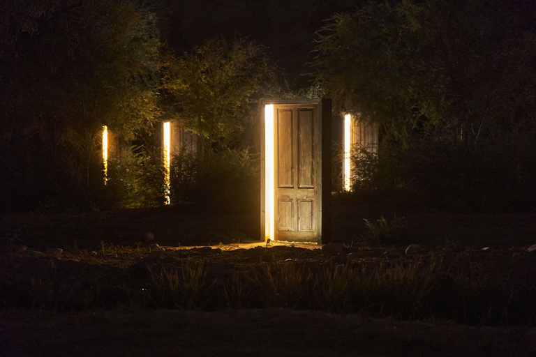 Située à Riyad, une métropole en plein essor plantée au milieu d'une vaste terre aride, l'exposition considère le désert comme un lieu de reconnexion où nos différences se dissipent. La lumière du désert nous aveugle autant qu'elle nous guide, nous trompe autant qu'elle nous émerveille. Ayant le pouvoir de nous éblouir visuellement tant que mentalement, l'intensité de la lumière dans le désert a une aura mystérieuse, presque miraculeuse, comme un mirage. Les rayons descendants se réfractent et semblent se retourner vers nous : ils révèlent que la lumière n'est pas statique mais se déplace dans l'atmosphère, comme si elle semait des graines ou arrosait les sols secs et uniformes. Particulièrement sujette à cette illusion d'optique, emblématique de ce qui peut être vu mais jamais atteint, Riyad se transforme en un jardin intangible où la lumière est conçue comme étant la force universelle qui construit notre monde contemporain et nos relations interpersonnelles.