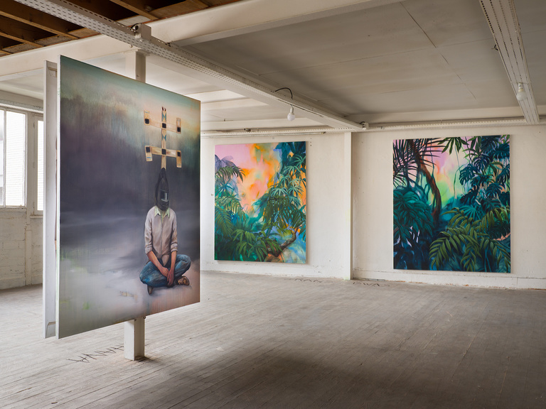 Malgré la diversité de leurs démarches, tous ont en commun une recherche qui tend vers la notion de profondeur, un « au-delà du miroir» que l’on éprouve progressivement au fil des espaces: des paysages de forêts tels de gigantesques bas-reliefs qui seraient issus de contes fantastiques chez Eva Jospin; aux fleurs photolu- minescentes plongées dans l’obscurité par Jennyfer Grassi comme des chimères, jusqu’aux peintures de jungles imaginaires et autres mythologies contemporaines de Romain Bernini.